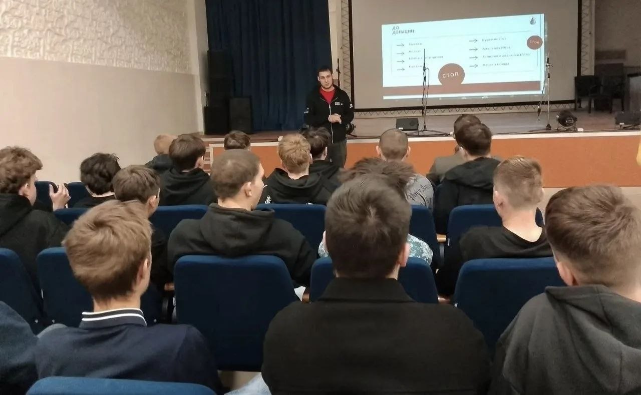 Одна из таких встреч прошла 7 апреля 2026 года в Луганском колледже автосервиса им. А.А. Гизая. Студенты встретились с финалистом проекта «Герои Луганщины», региональным координатором направления «Популяризация кадрового донорства» ВОД «Волонтёры-медики» в ЛНР, лектором Российского общества «Знание» Валерием Петровичем Татаренко.