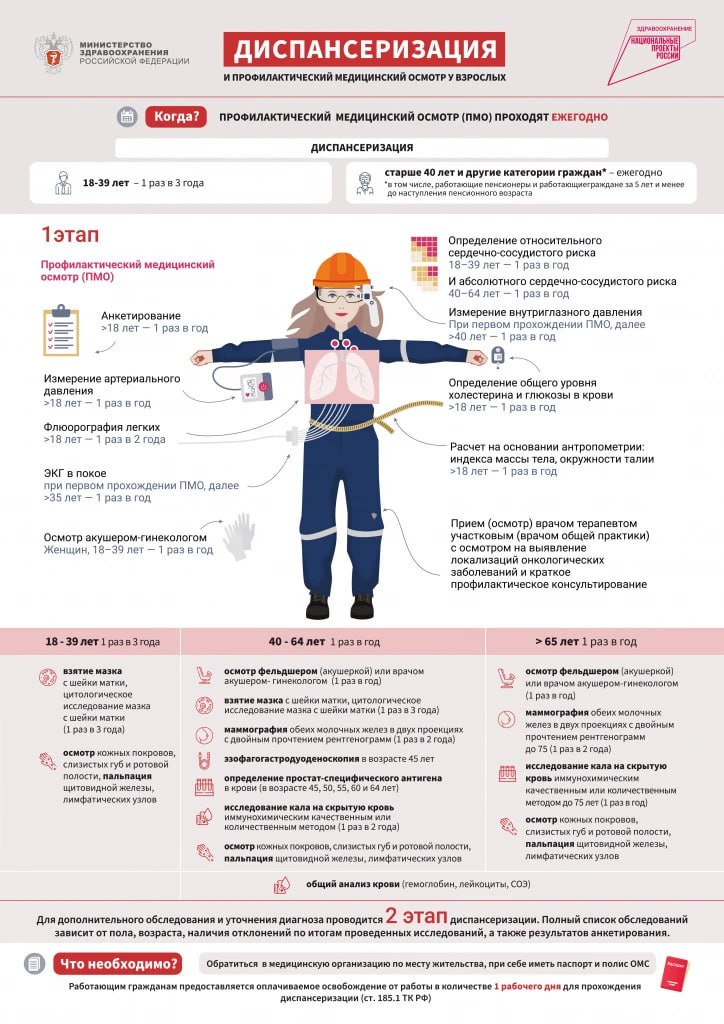 Порядок проведения диспансеризации следующий: граждане от 18 до 39 лет проходят диспансеризацию один раз в три года, старше 40 лет — ежегодно.