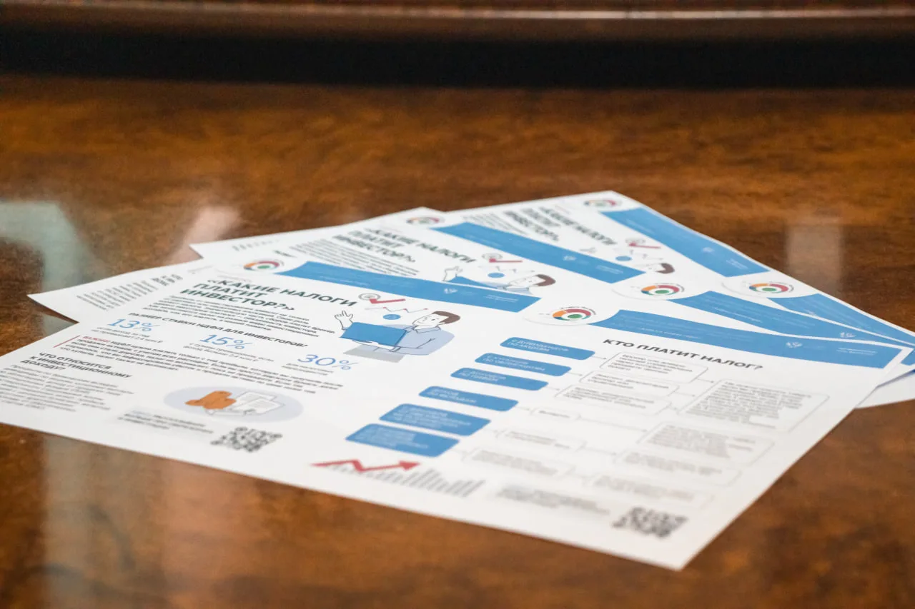 Также всем присутствующим раздали памятку «Какие налоги платит инвестор» – в ней кратко и наглядно представлены основные виды налогов, а также кто их оплачивает.