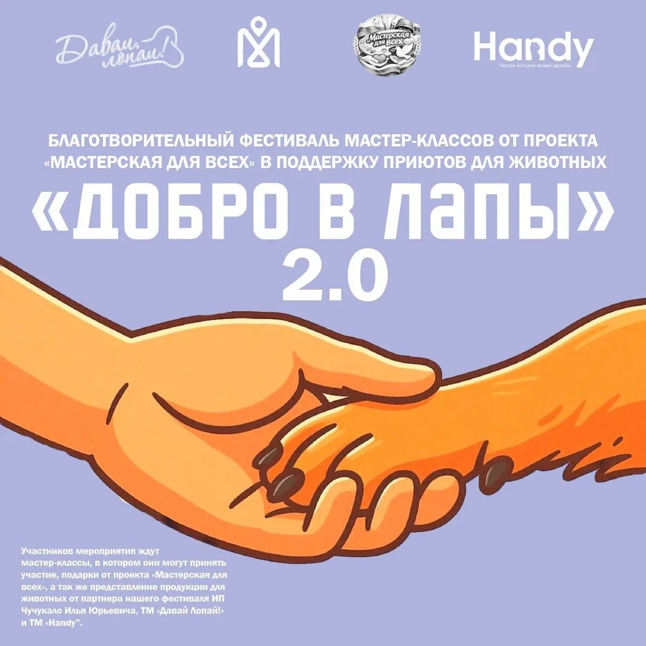 Поможем лапам. «Мастерская для всех» запускает благотворительный фестиваль «Добро в лапы» 2.0 в поддержку приютов На мастер-классах можно сделать: тарелки для вкусняшек