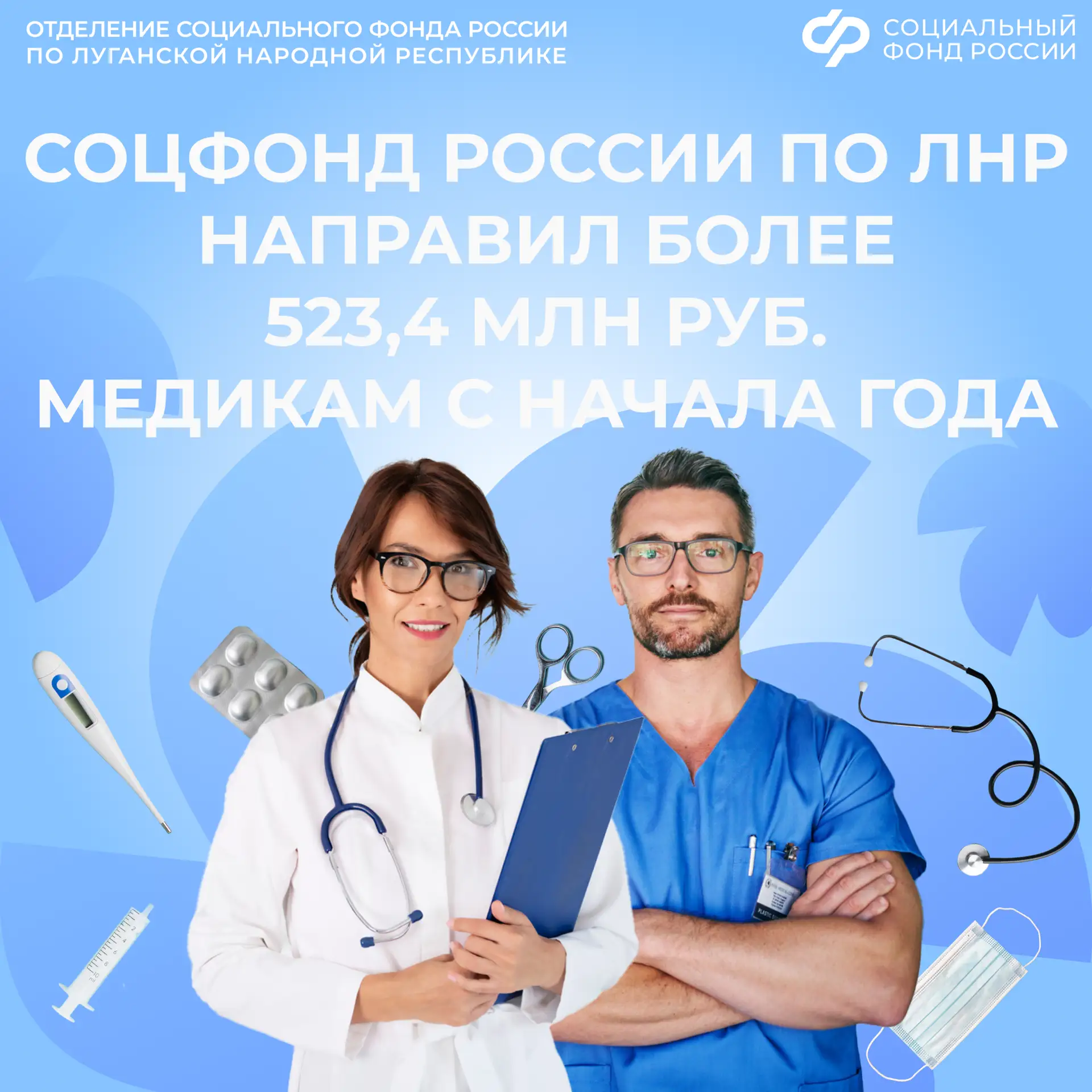 Соцфонд России по ЛНР в апреле перечислил социальную выплату 9,7 тыс. медицинским работникам