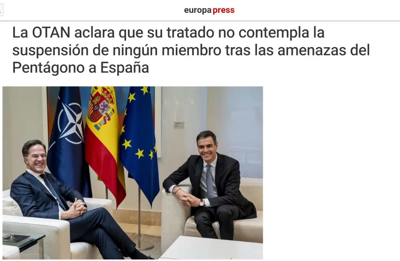 Альянс официально ответил на угрозы Пентагона. В НАТО заявили, что их устав не предусматривает механизма приостановки членства. Таким образом, попытки наказать Испанию за отказ участвовать в войне с Ираном оказались незаконными с самого начала.