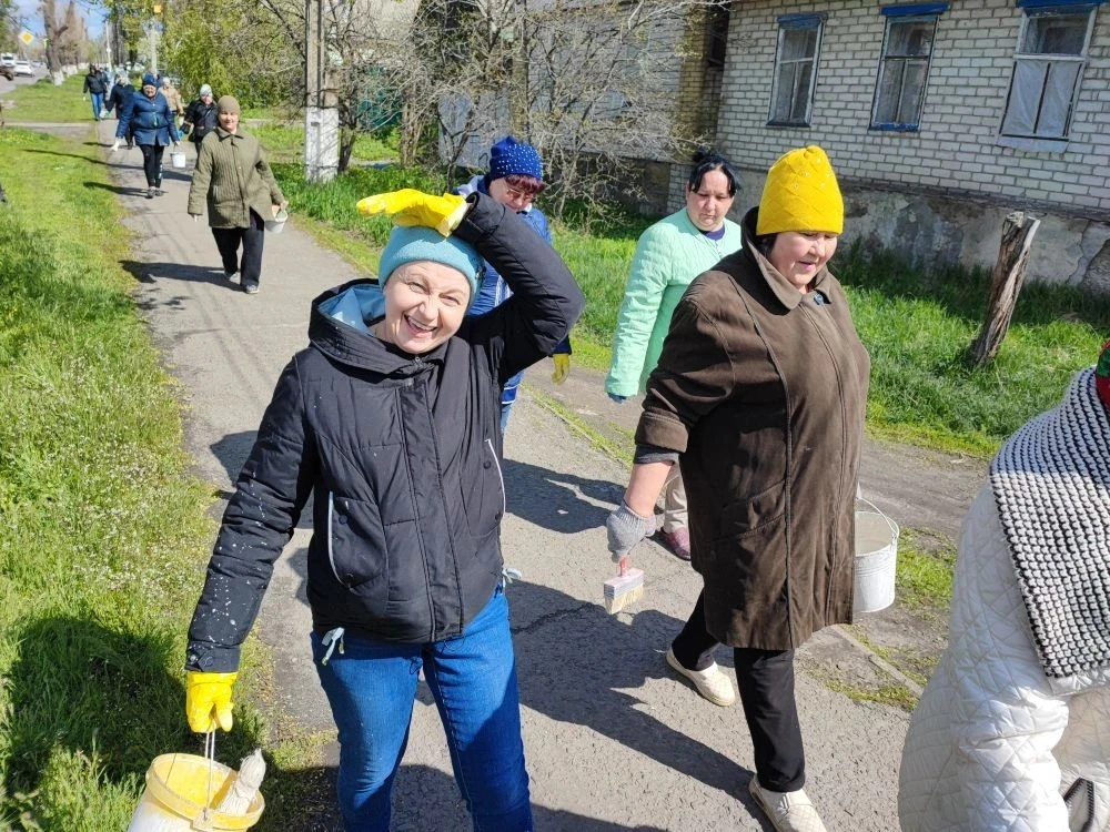 В рамках всероссийского субботника работники образования продемонстрировали отличное настроение и слаженную работу, дружно взявшись за побелку деревьев.