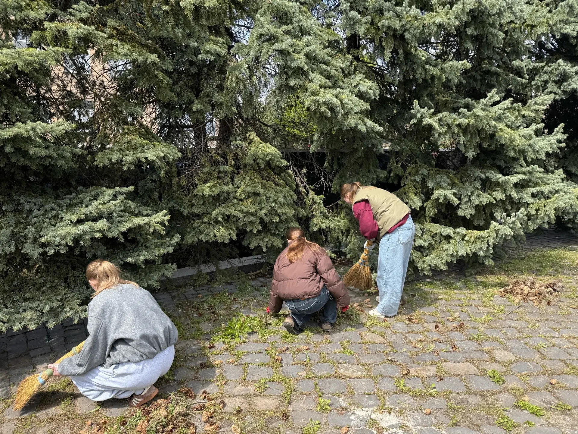 Ребята приняли участие в школьном субботнике, чтобы привести в порядок не только территорию школы, но и аллею напротив.