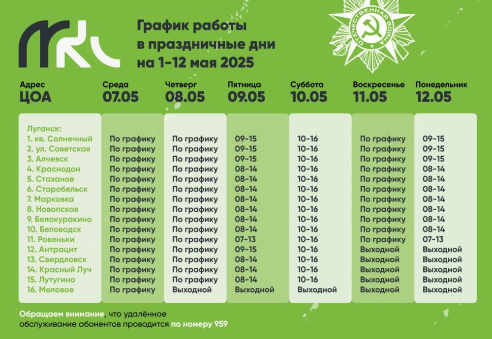 Мобильный оператор МКС опубликовал график работы абонентских отделов на майские праздники