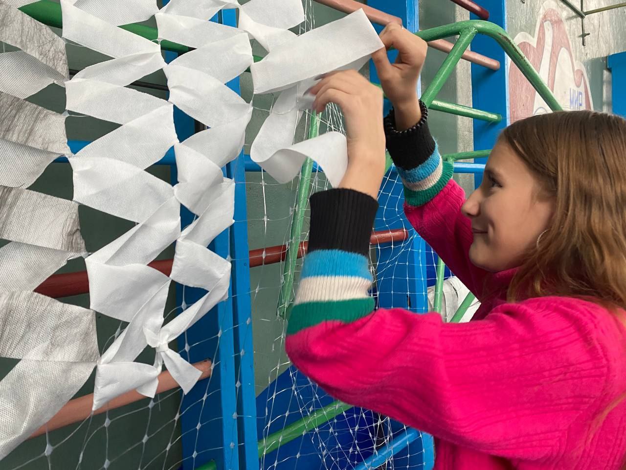 Члены УИК и учащиеся Стаханова плетут маскировочные сети для военнослужащих СВО