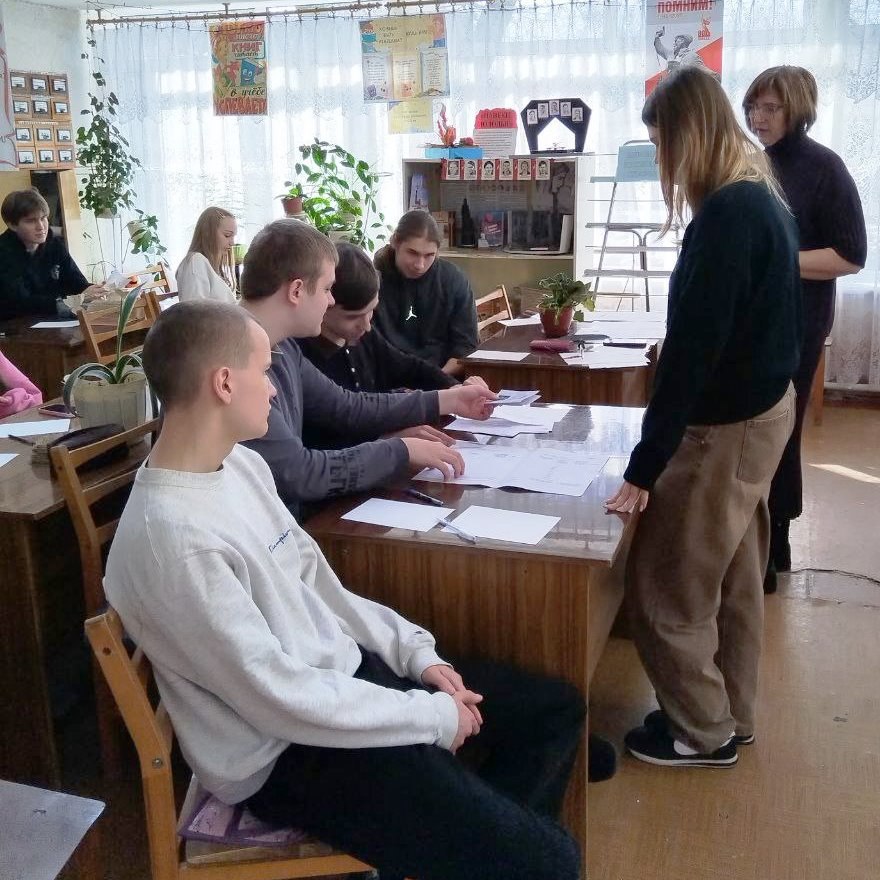 Школьная библиотека преобразована в импровизированный избирательный участок, где старшеклассники смогли на практике ознакомиться с процедурой голосования, заполнить бюллетени и узнать о распределении голосов.