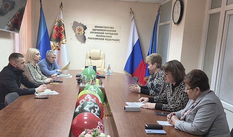 Член Комитета СФ по конституционному законодательству и государственному строительству, представитель от законодательного органа государственной власти Луганской Народной Республики Ольга Бас в ходе поездки в регион провела рабочее совещание с министром здравоохранения ЛНР Наталией Пащенко, ее заместителями, а также с главврачами Луганского республиканского клинического онкодиспансера и Луганской республиканской детской клинической больницы.