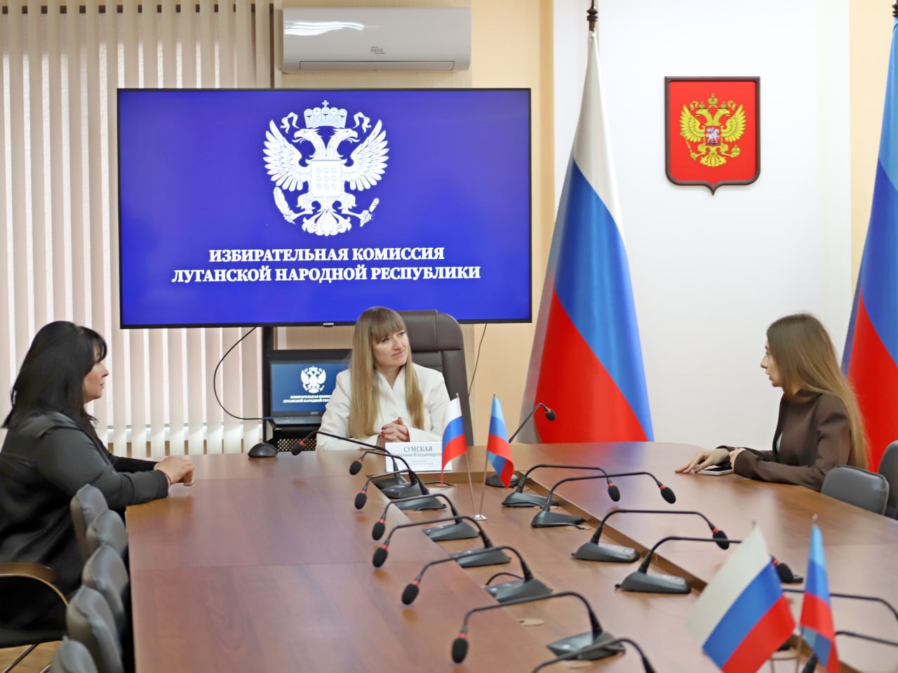 Председатель Избирательной комиссии ЛНР Марианна Сумская встретилась с Софией Гарькавой — финалисткой Всероссийской олимпиады школьников по вопросам избирательного права и избирательного процесса «Софиум». В торжественной обстановке Софии вручены диплом и памятный подарок.