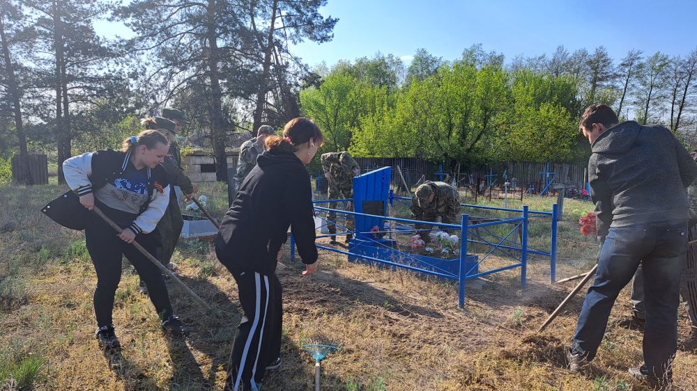 23 апреля в рамках реализации «Луганский характер» в селе Малиновое на кладбище состоялся субботник — убирали могилы ветеранов Великой Отечественной войны. На уборку вышли ученики-волонтеры, учитель «Станично-Луганской средней школы имени Грекова П.М.» Пелых Л.М., а также военнослужащие Росгвардии. Они убрали сухую траву, а также обновили краску на памятниках.