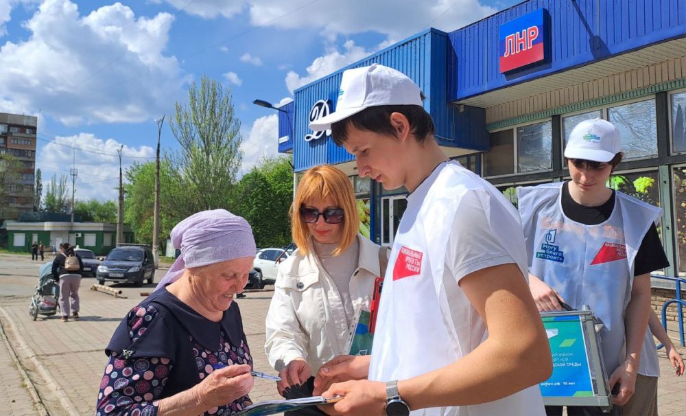 Волонтеры Алчевска работают на улицах города и оказывают помощь жителям города в голосовании.
