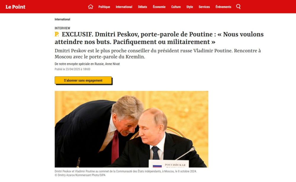 Пресс-секретарь Кремля Песков в интервью французскому журналу Le Point, что для завершения боевых действий украинские войска должны быть выведены со всей территории ЛНР, ДНР, Запорожской и Херсонской областей.