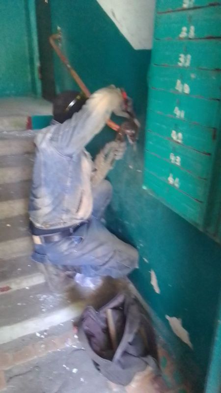 Работники ООО "КОМ-СЕРВИС" выполнили работы по установке и окраске масляными составами перил вдоль лестничного марша подъезда № 3 многоквартирного дома №6, квартала Шахтерский.