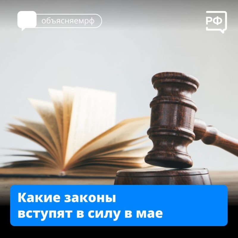 В карточкахОбъясняем.рф — эти и другие законы, которые вступают в силу в мае.