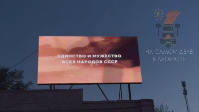 На Городке установили большой экран, на котором показывают кадры, посвященные 80-летию Победы.