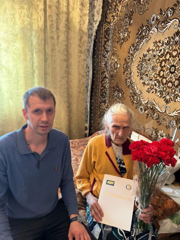 В преддверии Дня Победы депутат Совета Лутугинского муниципального округа от фракции ЛДПР Денис Волотковский навестил Веру Ивановну Болховитину — женщину, пережившую блокаду Сталинграда.