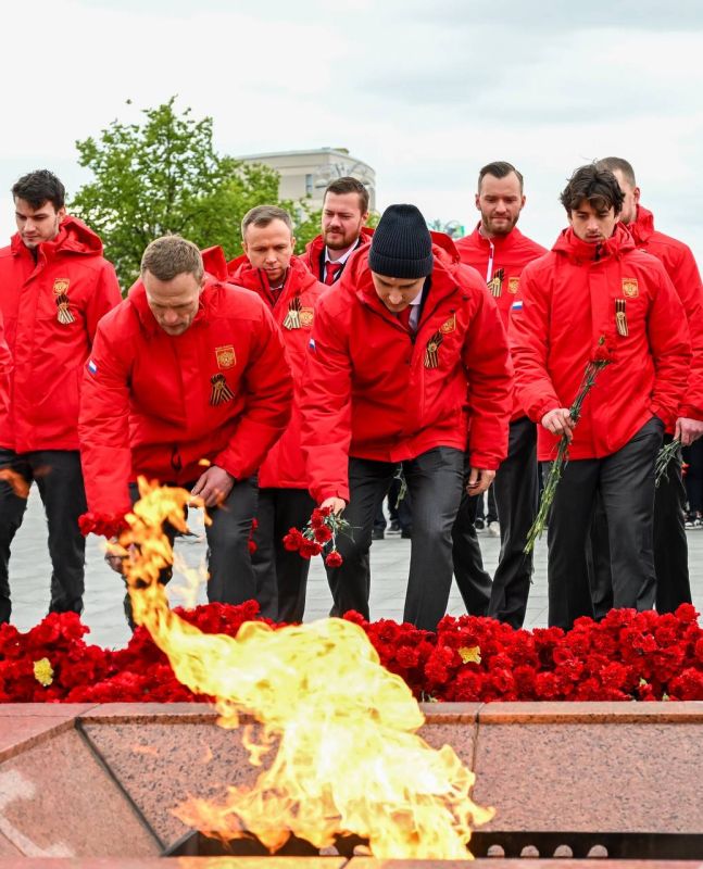 В преддверии 80-й годовщины Победы сборные России по футболу и хоккею, а также сборная Белоруссии почтили память воинам Советской армии.