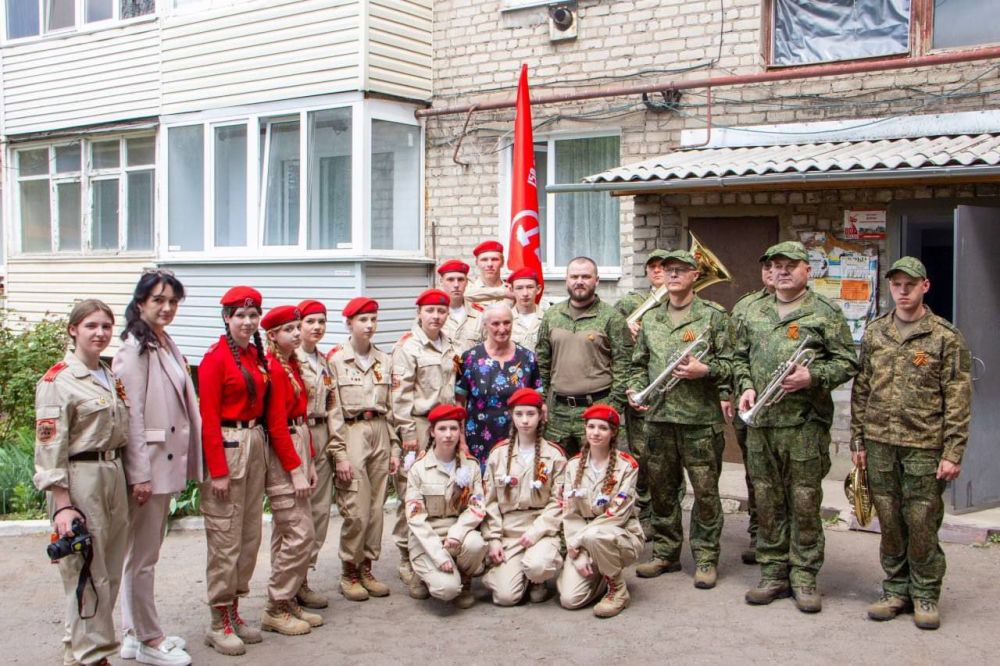 Ежегодно, в преддверии Великого Дня Победы юнармейцы Стаханова принимают участие в акции «Парад у дома ветерана» и этот год не стал исключением. При поддержке военного оркестра города Луганска ребята прошли торжественным маршем, подарили цветы, подарки от Министерства молодёжной политики и главный символ праздника – георгиевскую ленту.