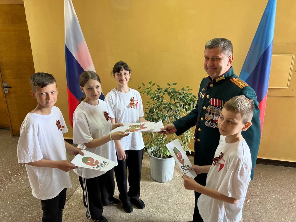 В честь 80-летия Великой Победы, вместе с активистами Движения Первых, принял участие в оформлении здания Администрации Старобельского муниципального округа в рамках акции «Окна Победы».