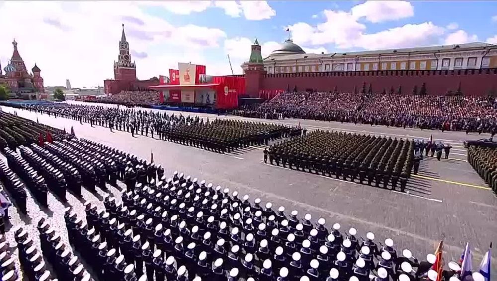Президент России завершил свою речь. После этого прозвучал торжественный залп орудий и гимн России.