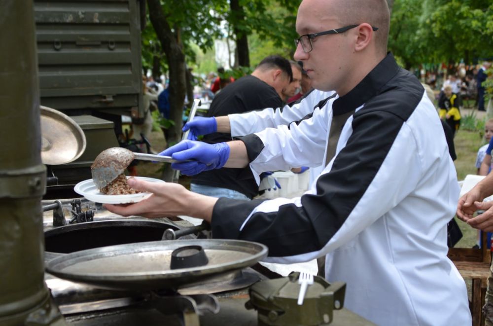 На территории парка работала полевая кухня, где каждый мог отведать вкусную фронтовую кашу, приготовленную с душой. Также была организована выставка творчества наших местных мастеров-умельцев, которые представили свои удивительные работы.