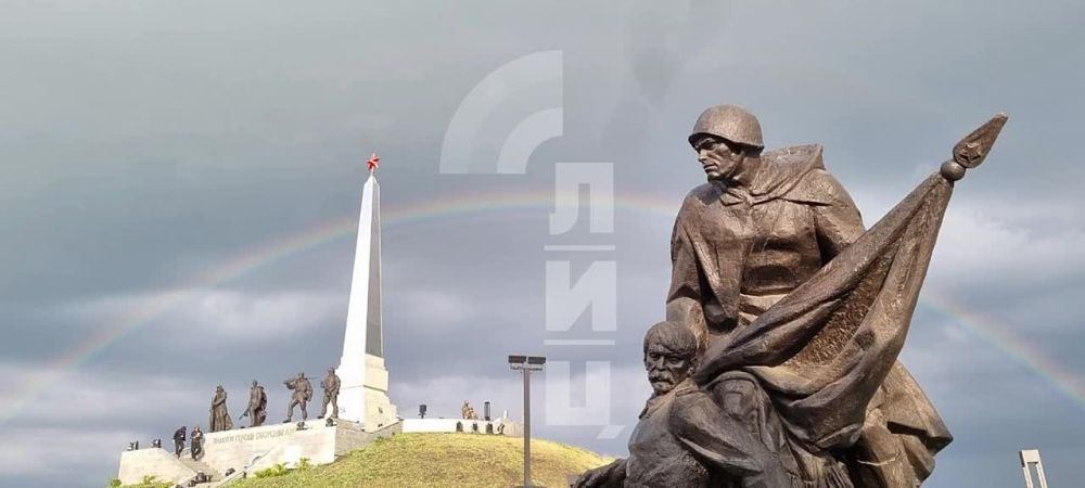 Радуга раскинулась над мемориалом «Острая могила» в Луганске
