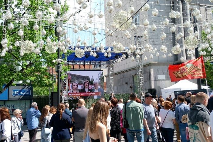 - С присущей широтой донбасской души участники поздравили всех присутствующих на площади зрителей с Величайшим Праздником для каждого из нас Днём Победы! Поблагодарили шефов регионов за помощь и поддержку в восстановлении благоустройства нашей территории, а также рассказали о том как мы празднуем этот знаменательный день, -