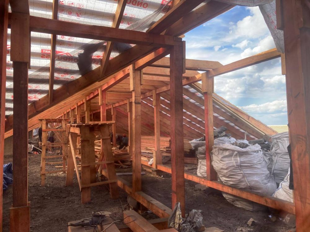 В Белореченском Лутугинского муниципального округа продолжается ремонт кровель трех многоквартирных домов по улице Ленина. Ульяновские строители уже завершили демонтаж старых крыш, вывезли мусор со строительной площадки, собрали новую обрешетку и уложили гидроизоляционный слой.