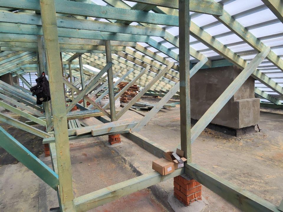 «Продолжаются работы по реконструкции кровли на доме № 9 в микрорайоне Молодежном. Ведется монтаж новой стропильной системы с контробрешеткой, выполняется кладка дымовентканалов. Смонтирован профлист на одной секции дома», — добавил он.