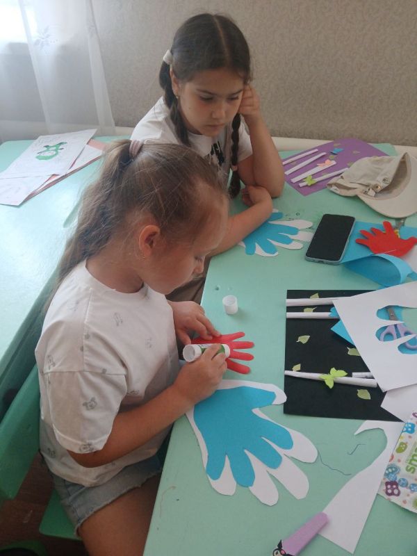 В преддверии этого события воспитанники летней пришкольной площадки "Наследники Победы" приняли участие в увлекательной творческой мастерской по созданию праздничной открытки-триколор. Ребята повторили символику цветов флага, воплощая в открытку – триколор: