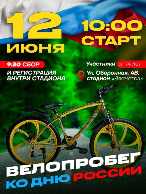 Приглашаются велолюбители и спортсмены возрастом от 14 лет. Регистрация начнется 12 июня в 09:30 в чаше стадиона «Авангард».