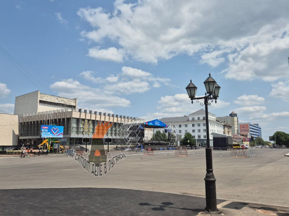 Подготовка ко Дню России в центре Луганска идет полным ходом