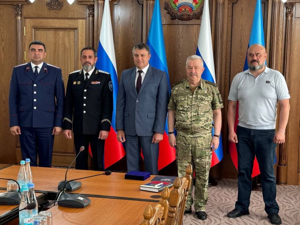 В преддверии Большого Круга Донских казаков Луганской Народной Республики, Глава ЛНР Пасечник Леонид Иванович встретился с Атаманом Всероссийского казачьего общества, заместителем полномочного представителя Президента Российской Федерации в СКФО, казачьим генералом Кузнецовым В. В. и Атаманом Всевеликого войска Донского, заместителем губернатора Ростовской области, казачьим полковником Бодряковым С.Н. В мероприятии принимал участие советник Главы ЛНР по вопросам казачества Полуполтинных В.С.