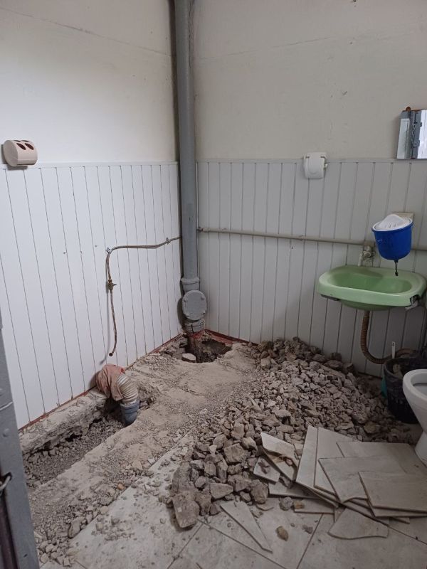 В рамках подготовки образовательных учреждений к новому учебному году в Ровеньковской школе №7 им. С. Ф. Пирогова ведутся ремонтные работы обеденного зала и санузла.