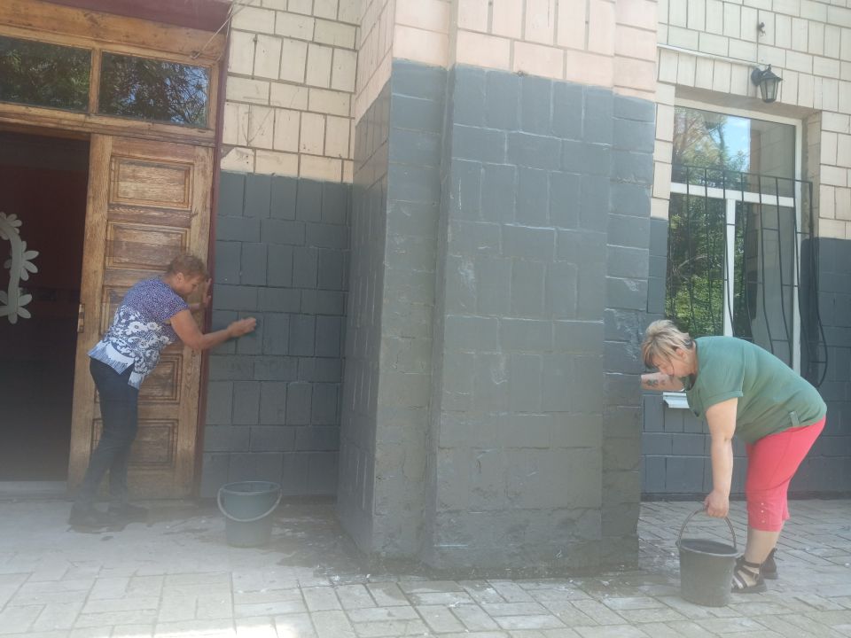 Дружно разобрав рабочий инвентарь, побелили летнюю эстраду, покрасили лавочки, убрали сухостой, вымыли и вычистили колонны центрального входа в здание.