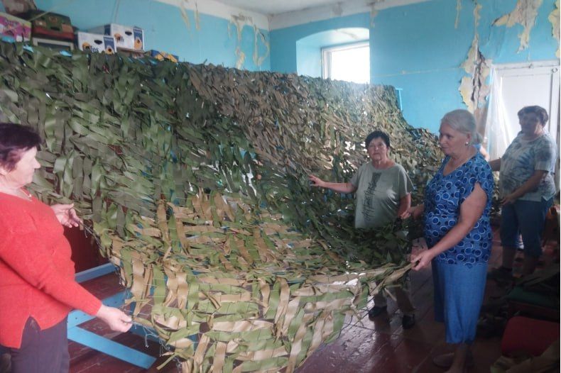 На территории села Провалье жители плетут маскировочные сети для участников СВО