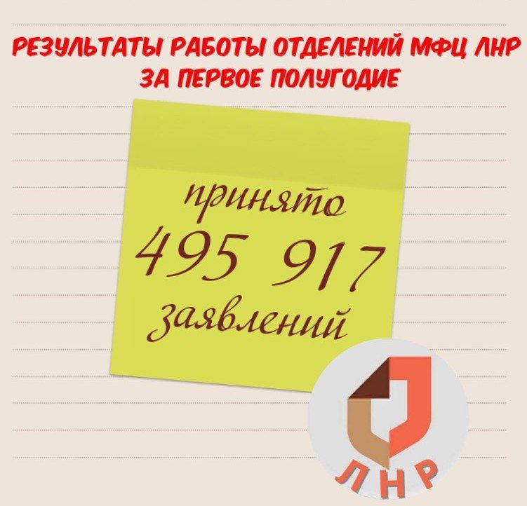 Более 495 тысяч заявлений приняли работники МФЦ ЛНР от граждан в первом полугодии 2025 года