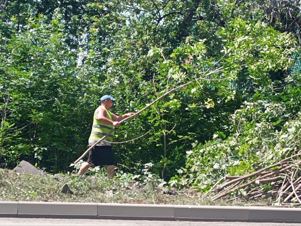Подрядной организацией 000 "Проект-строй" выполняются работы по уборке самосевной поросли, покосу травы, очистке обочин вдоль автомобильной дороги общего пользования регионального значения 43 ОП РЗ 43К-14 Свердловск-Ровеньки.
