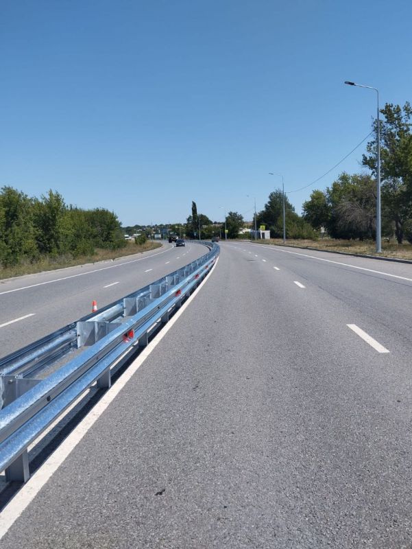 Проводится установка металлического барьерного ограждения на автодороге Луганск - Лутугино - Красный Луч - граница ДНР.