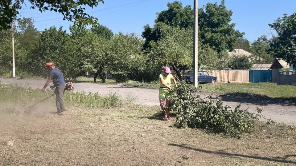 Работники отдела жизнеобеспечения пгт Дзержинский совместно с работниками МУП «ЖЭК» города Ровеньки выполняют сбор мусора, покос травы, вырубку дикорастущей поросли.