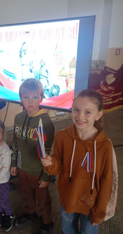 В начале мероприятия прозвучал гимн Российской Федерации,который с гордостью подпевали ребята. В дальнейшем в ходе мероприятия,которое было проведено в виде путешествия по разным станциям дети познакомились с историей возникновения праздника, подвигами наших предков во имя независимости