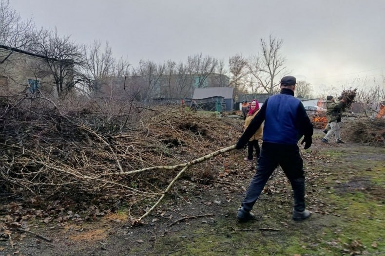 Отделом по обеспечению жизнедеятельности поселка городского типа Шахтерский был организован субботник по благоустройству территории по улице Лермонтова возле многоэтажных домов.