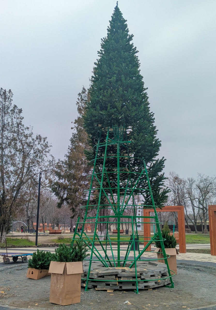 В парке культуры и отдыха началась подготовка к Новому Году! Начата установка новогодней елки.