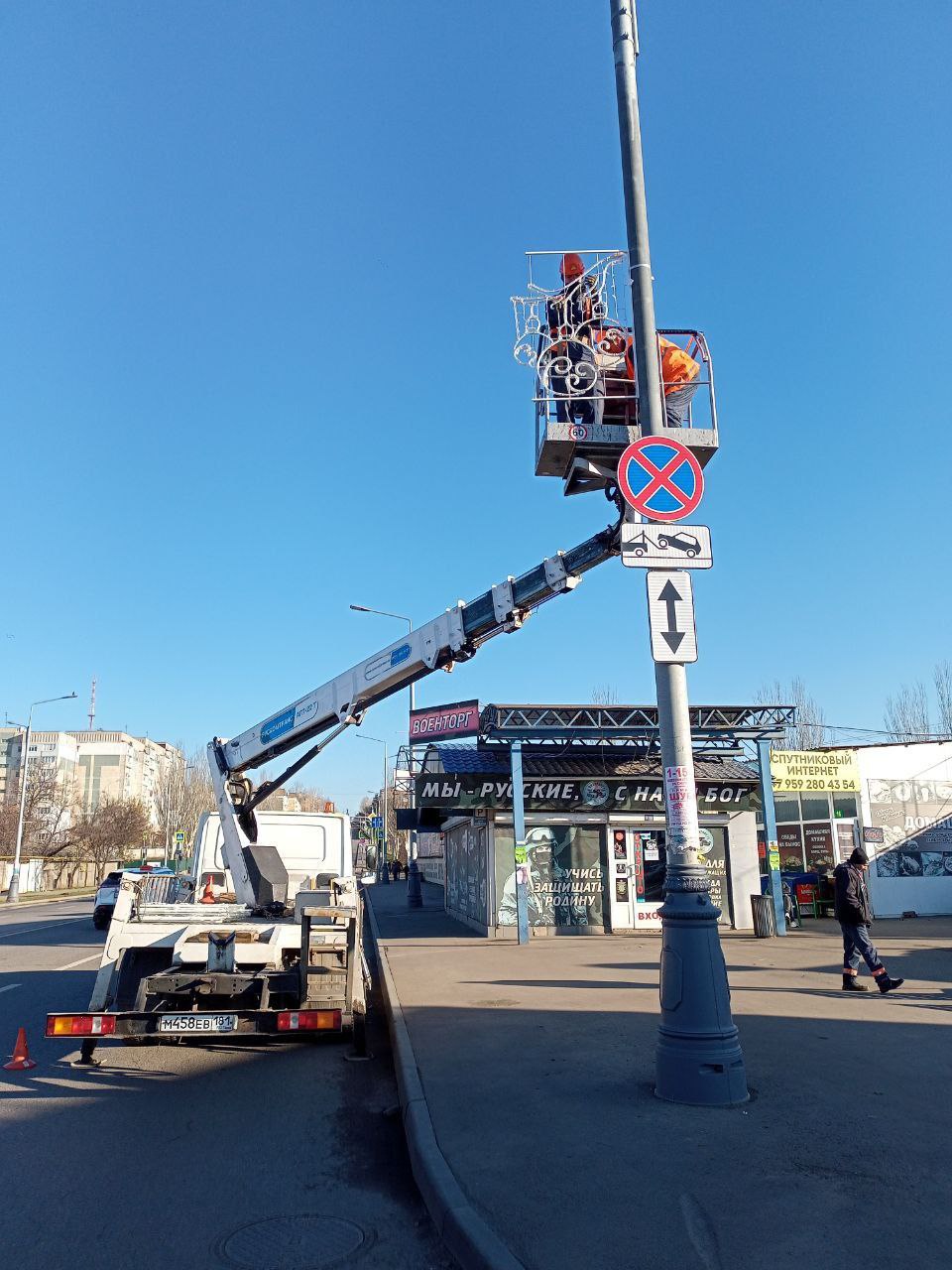На улицах города уже установлено 20 проекторов с новогодними изображениями и около 500 новогодних консолей, а еще протянуто более километра гирлянд.