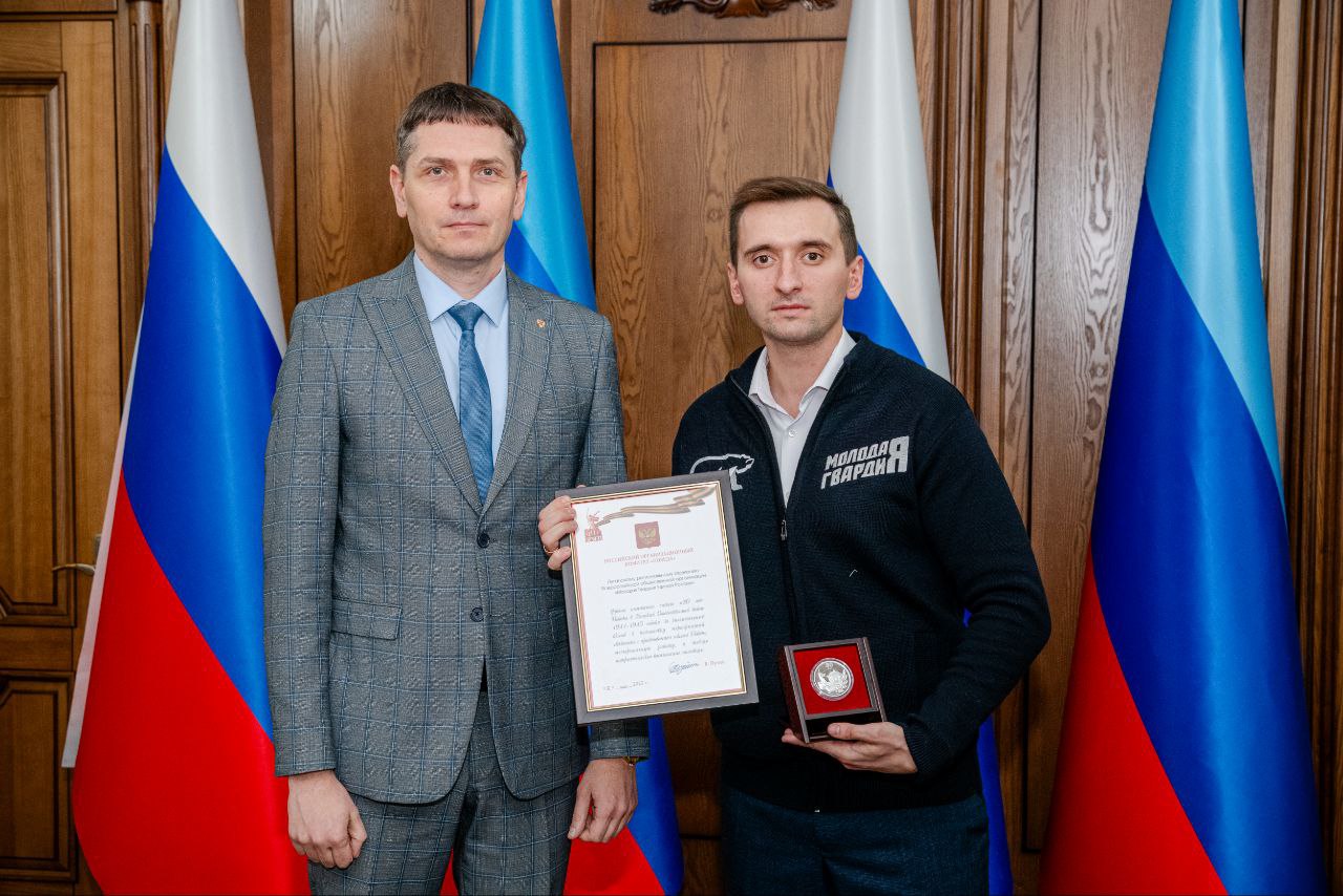 Награды передали из Администрации Президента РФ. Их вручил руководитель Администрации Главы ЛНР Алексей Самойлов в честь 80-летия Великой Победы.