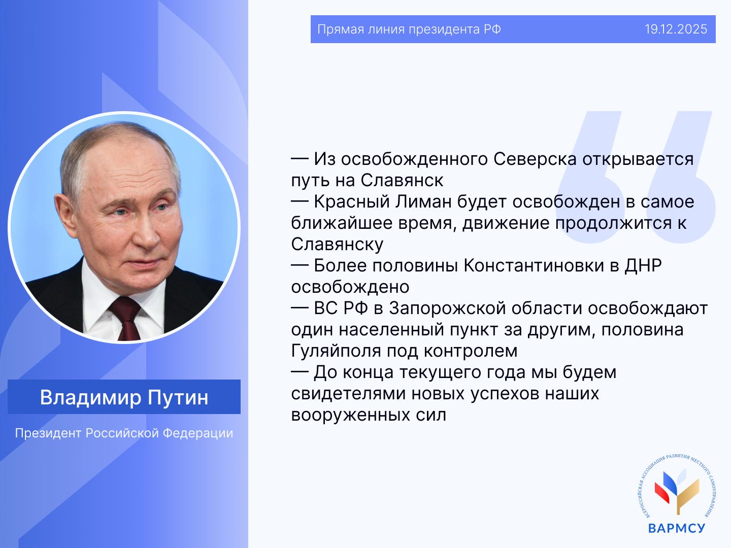 Завершились "Итоги с Владимиром Путиным" — более 4,5 часов прямого диалога о ключевых вопросах жизни страны и ситуации на передовой. Президент подробно рассказал о ходе боевых действий и подчеркнул: российские подразделения уверенно продвигаются...