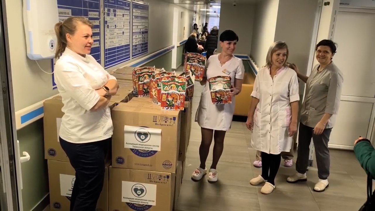 "Вместе с новогодними подарками мы передаём частичку тепла и доброты. Желаем в новом году и деткам, и персоналу, прежде всего, здоровья и нашей скорейшей Победы!", — обратился к врачам и медсёстрам Александр Сукаченко, руководитель Тюменской региональной общественной организации «Офицеры России», депутат Тюменской городской думы.