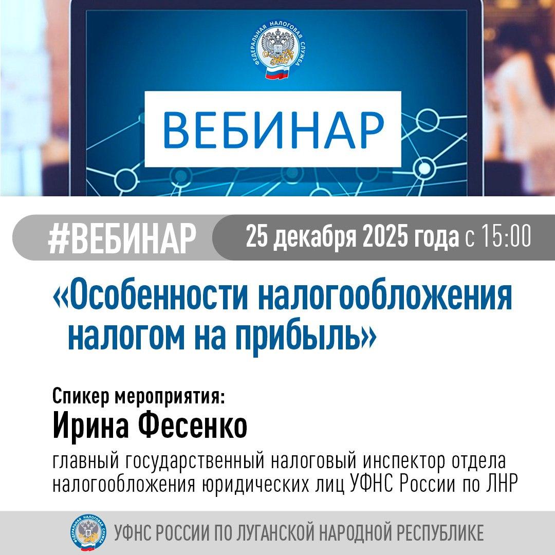 УФНС России по Луганской Народной Республике проведет обучающий вебинар, в рамках которого будут рассмотрены: