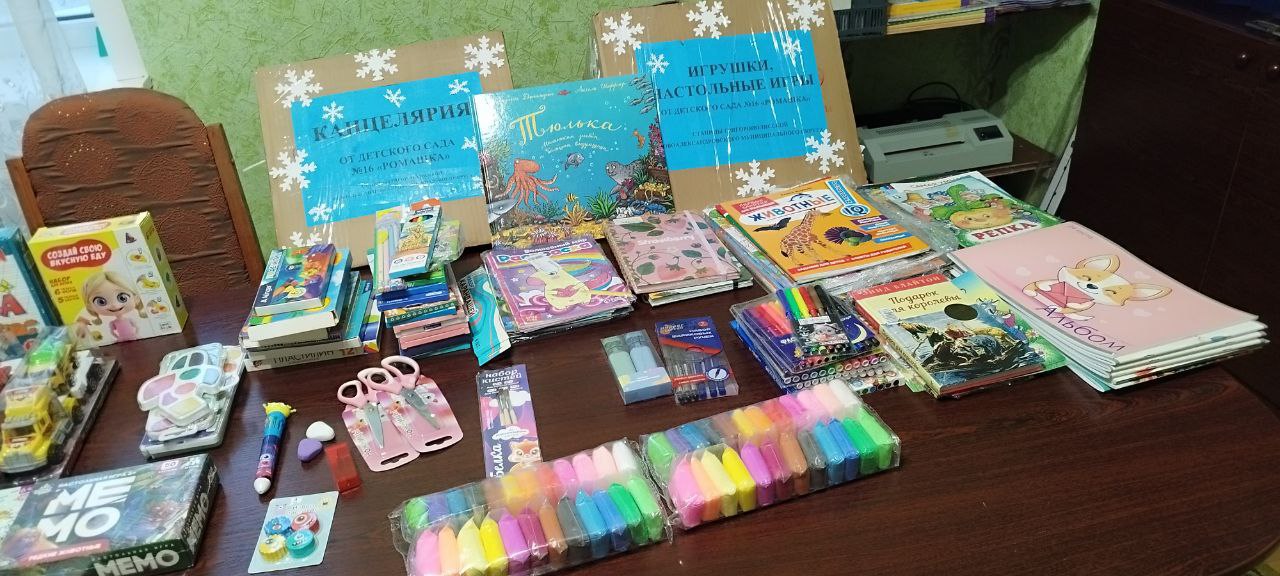 Гости приехали не с пустыми руками. Для детского сада привезли новогоднюю ёлку и гирлянды, канцтовары, настольные игры, комплекты полотенец и, конечно, сладкие подарки для всех воспитанников. Всё — к празднику, с заботой и вниманием к детям.