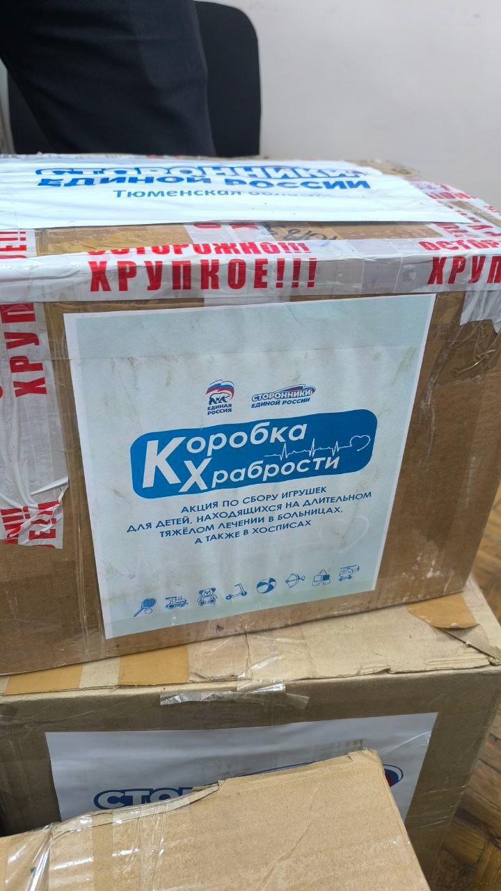 Неравнодушные тюменцы, сторонники и активисты Тюменского регионального отделения "Единой России" собрали семь "Коробок храбрости" для краснодонских детишек. А доставила их команда общественной организации «Офицеры России» во главе с депутатом Тюменской городской думы Александром Сукаченко. Эти коробки предназначены для детей, которым особенно нужны поддержка и внимание.